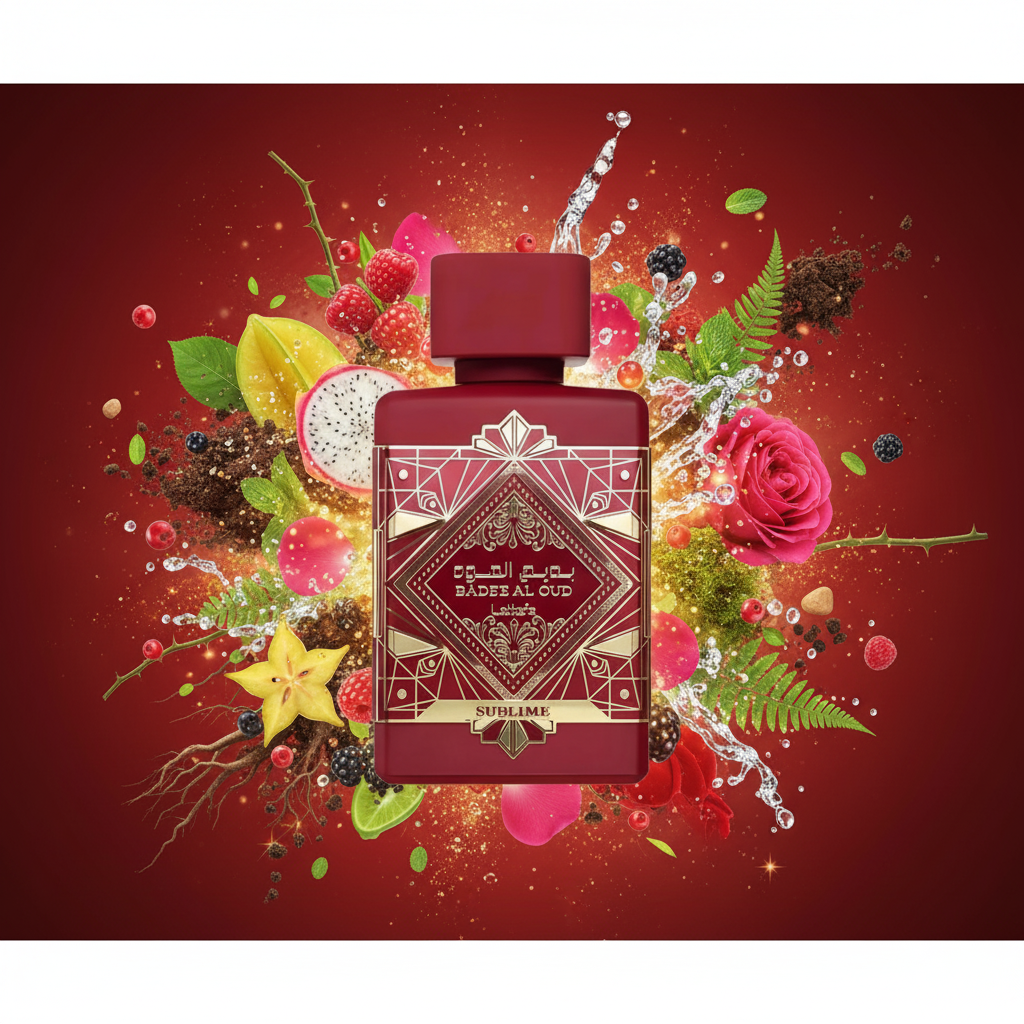 Bade’e Al Oud Sublime de Lattafa es una fragancia envolvente que combina el misterio del oud con la frescura frutal y el dulzor especiado. Creada para quienes buscan dejar una huella elegante y poderosa, esta esencia abre con notas vibrantes de manzana verde y lichi, que aportan jugosidad y vitalidad. En su corazón, se despliegan acordes ambarados, florales y un toque cremoso de vainilla, que suavizan y equilibran la composición. El fondo revela la fuerza del oud, maderas exóticas y almizcle, construyendo una estela magnética y duradera.