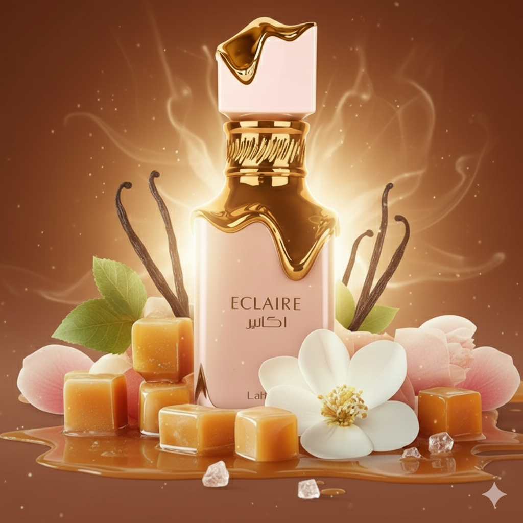 Eclaire de Lattafa es una fragancia gourmand deliciosa y adictiva, diseñada para quienes buscan un perfume cálido, acogedor y con personalidad dulce. Desde su salida, se perciben notas de cacao, café y un toque cremoso que evocan un postre recién preparado. En el corazón, la vainilla y el caramelo se funden con matices especiados, creando un aura golosa y sofisticada. El fondo de almizcle, maderas suaves y ámbar completa la experiencia con una fijación duradera y envolvente.